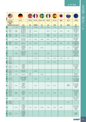 材質No. アメリカ ドイツ イギリス フランス スウェーデン イタリア スペイン 日本 ロシア EN規格 材質No. アメリカ ドイツ イギリス フランス スウェーデン イタリア スペイン 日本 ロシア EN規格