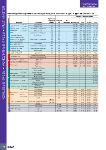 Рекомендуемые параметры резания для концевых монолитных фрез и фрез MULTI-MASTER